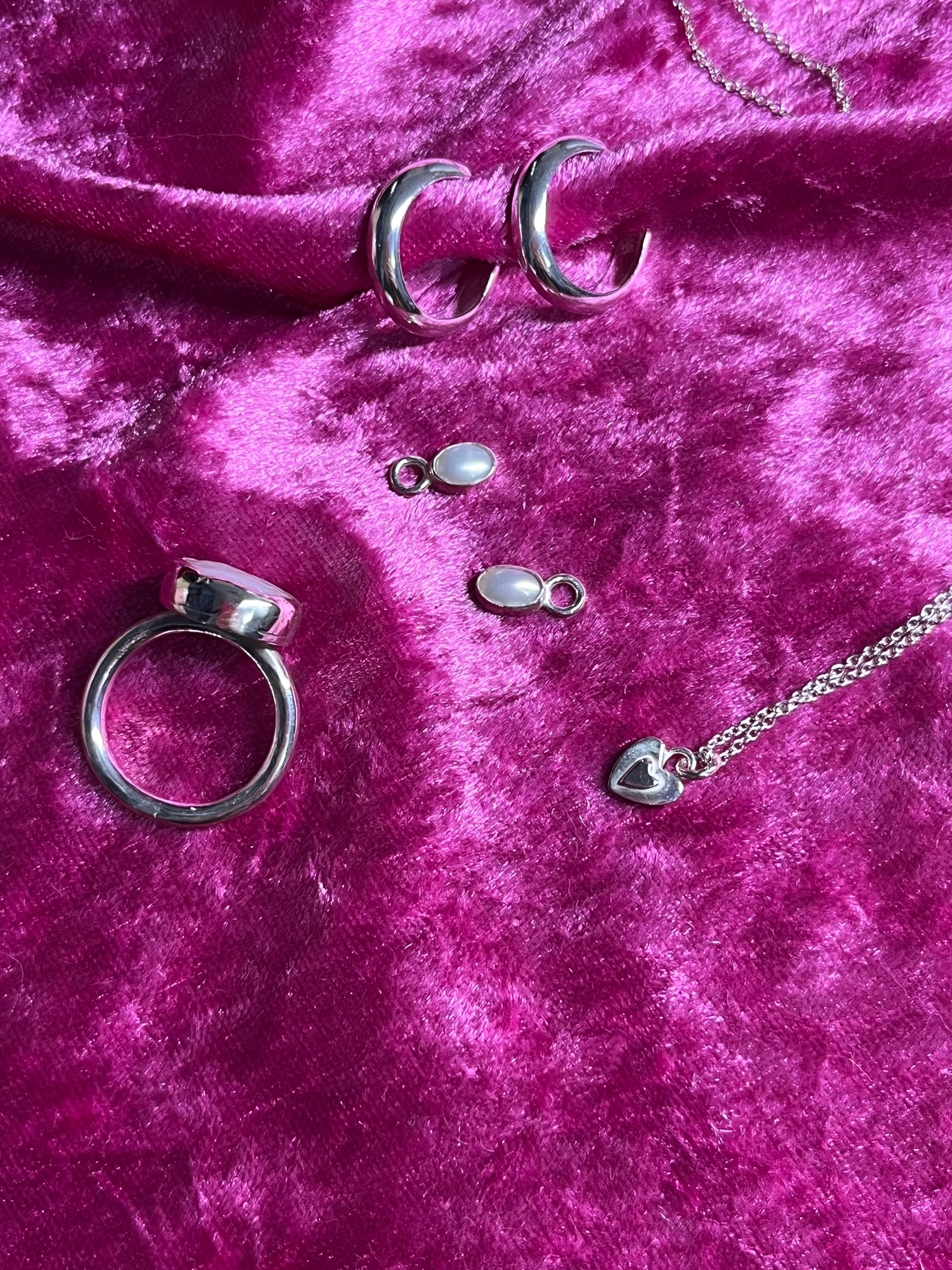 This statement ring packs a dazzling punch whilst being elegantly simple. Handcrafted from recycled sterling silver wire and sheet; this ring features a bezel set freshwater coin pearl between 12-13mm. Available in all sizes, simply pick yours below!