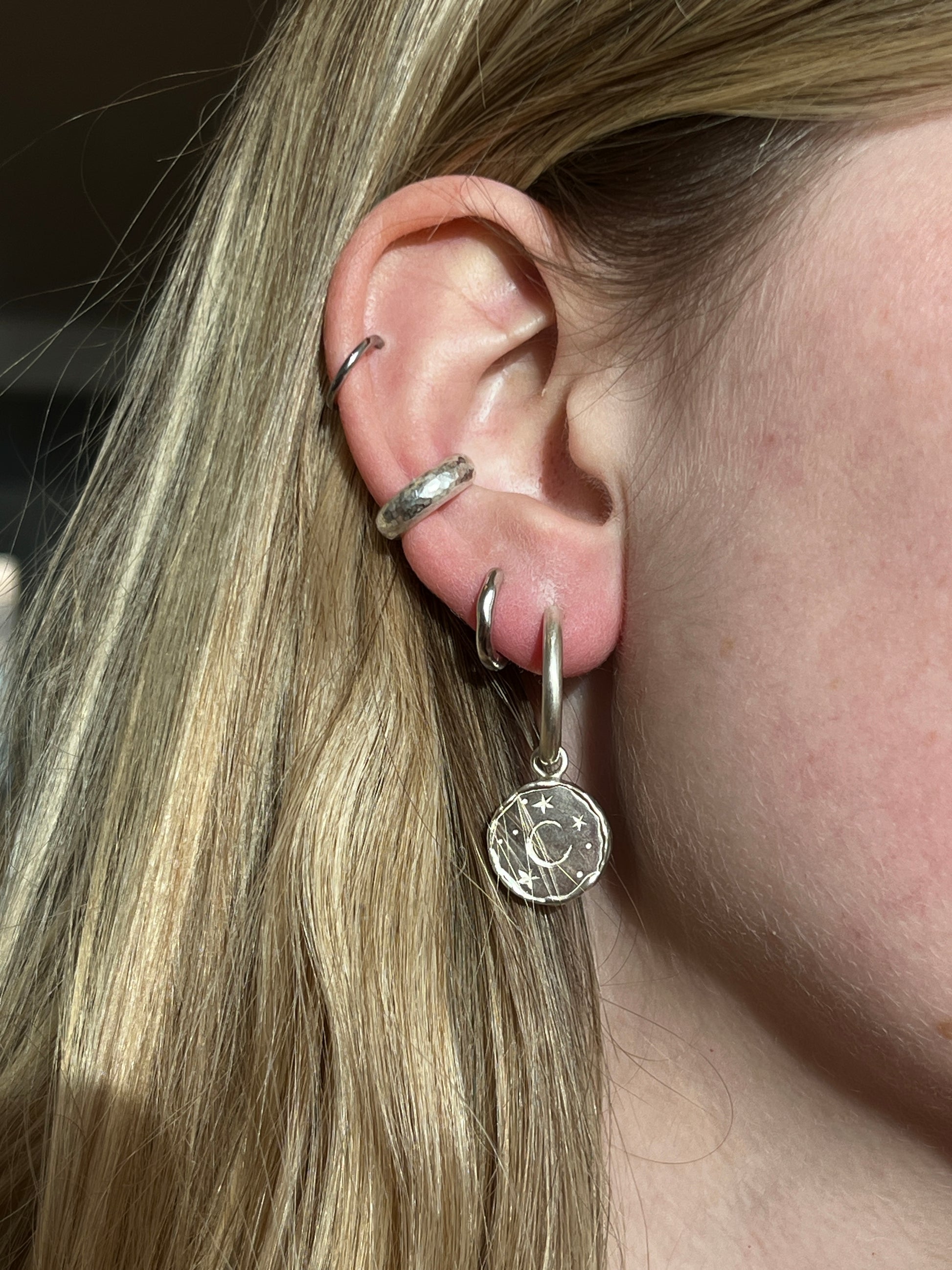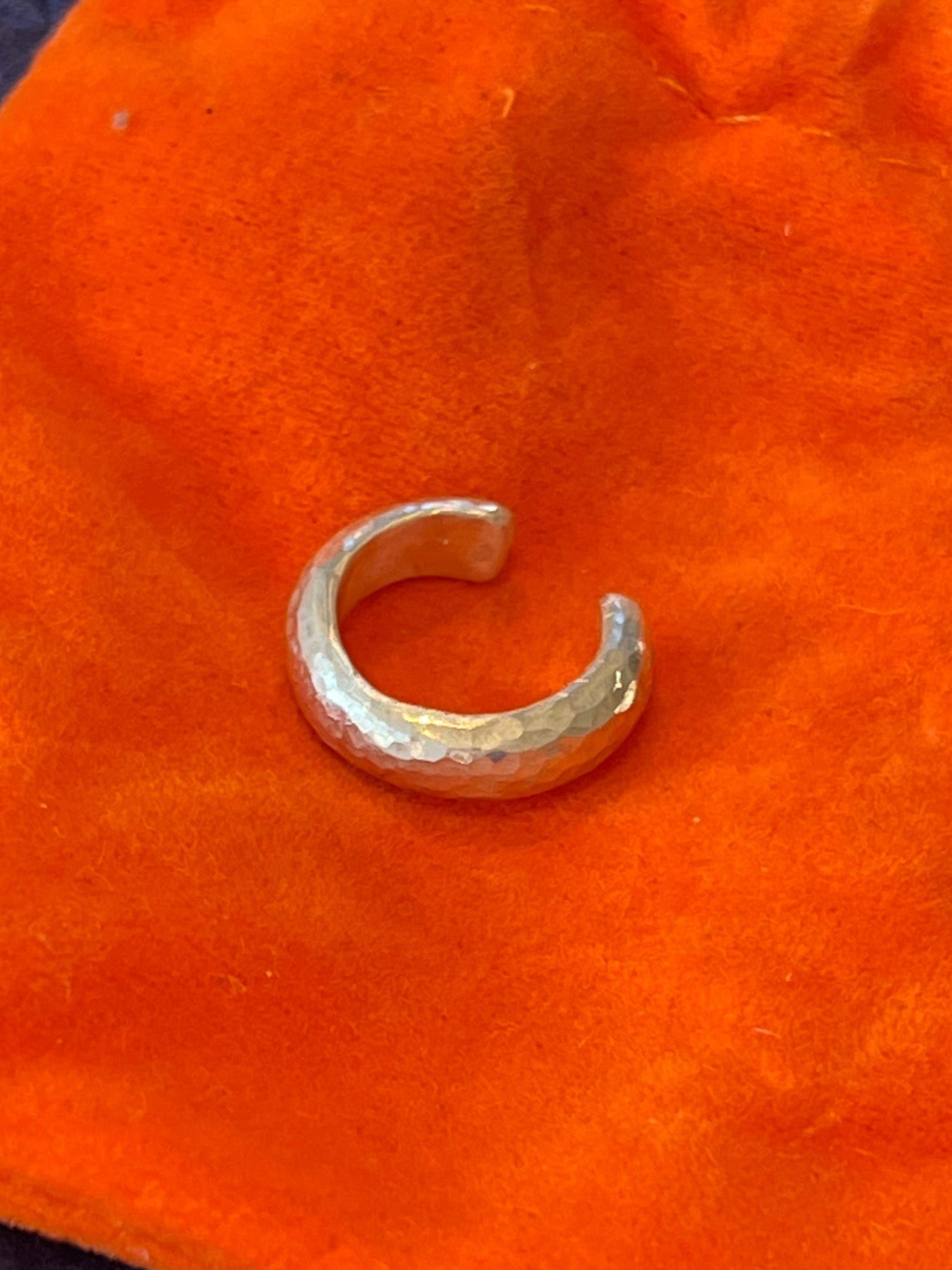 A chunky ear cuff made from recycled sterling silver wire. The cuff has a d-shape profile (super comfy) and a hammered texture. You can pick between satin finish or high polish!