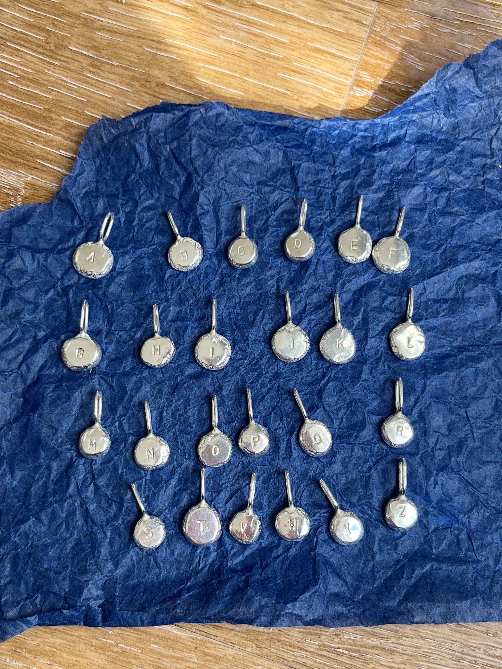 Personalise your necklace stack with these cute letter charms, whether its with your initial or an initial of a loved one! These are made from recycled silver scrap from the sunslices bench, repurposed into something super cute!